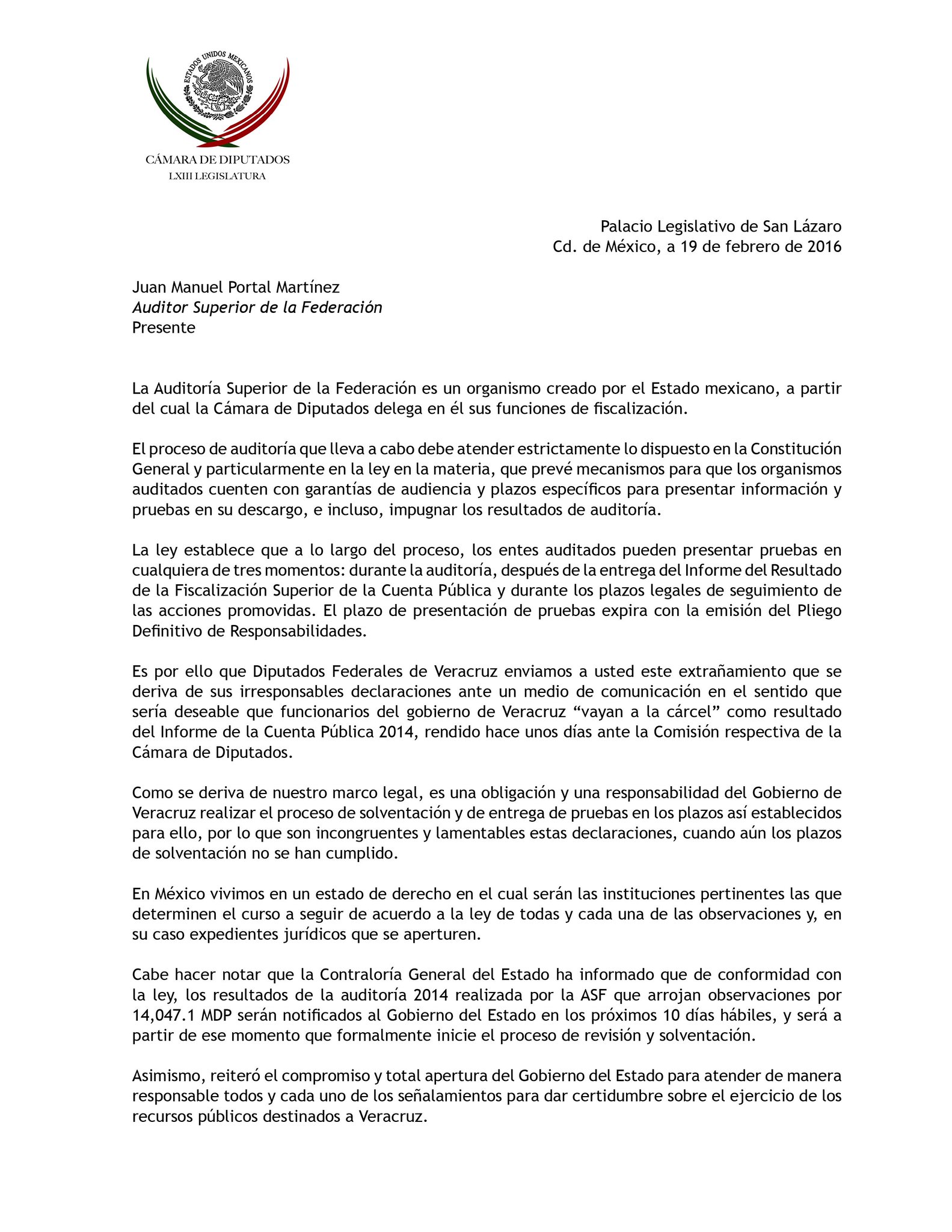 Javier Duarte On Twitter: "carta De Los Diputados via twitter.com